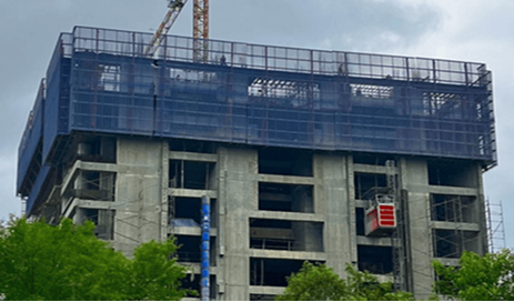For our high-rise projects, we implement Safety Screen Systems as a critical part of vertical construction. These perimeter protection systems move upward with the structure, enclosing multiple floors and providing a safe working environment at height.